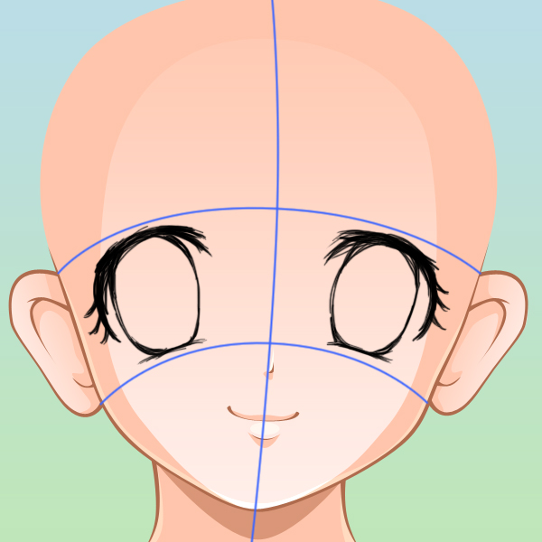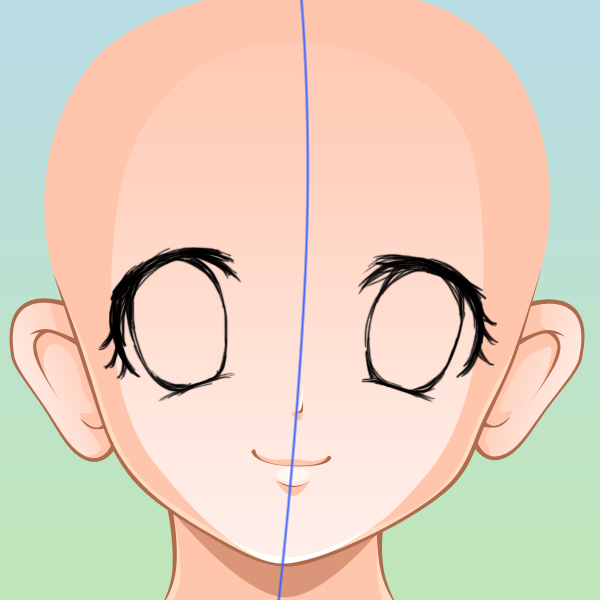 当你完成的时候,添加两个细线条,在各个眼睛的上部,如图---这些代表眼皮。隐藏你的绘画图层来看效果,然后做一些你想要的任何编辑。现在你该准备好添加一些颜色了。