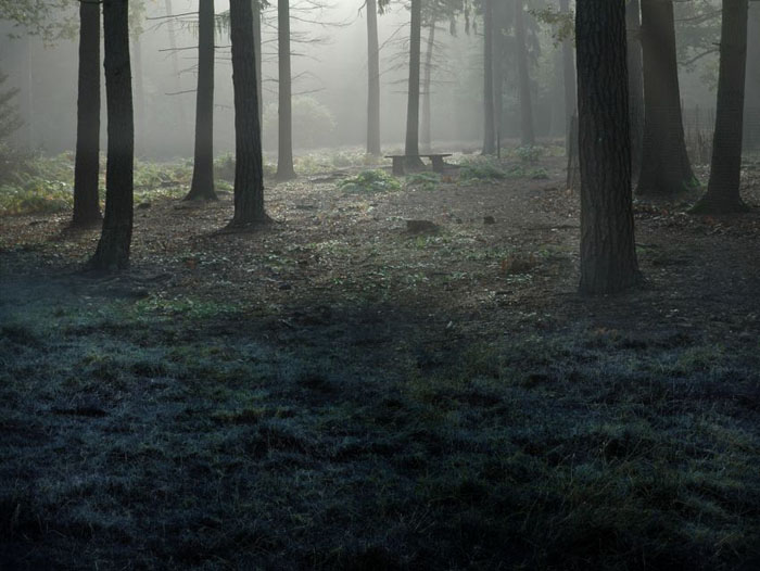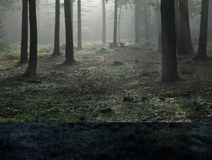 7、森林背景应用高斯模糊滤镜,模糊半径为12像素。在滤镜蒙版上,用软黑画笔降低地面和森林之间的模糊效果,效果如下。
