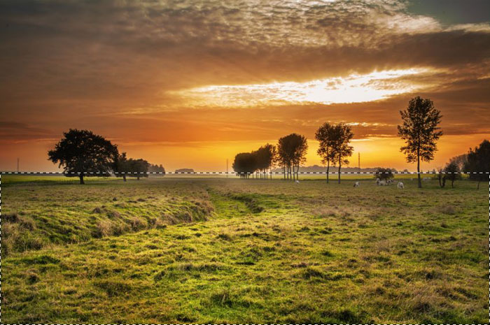 2、打开“地面”素材,选择矩形选框工具,只选择草地部分,移动到主画布底部。