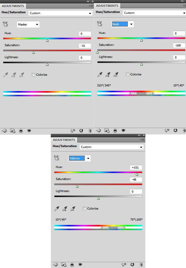 4、添加色相/饱和度调整图层,设置为剪贴蒙版,如下图设置饱和度、红色和黄色的数值。