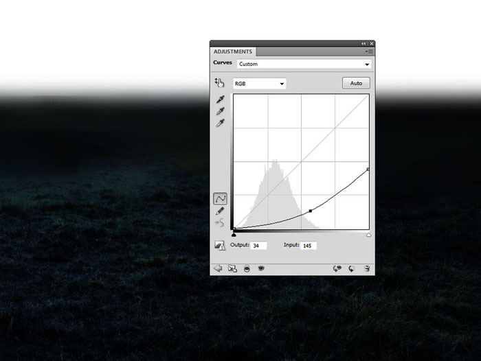 5、创建曲线调整图层,降低亮度。在调整曲线图层蒙版上,用黑色软笔刷为草地添加一些光照效果。