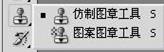 然后选择仿制图章工具,在材质图片中按【CTRL】键并用鼠标点击材质图片,这样就可以把材质一块一块的复制出来,鼠标也会变成好像有了笔触一样。