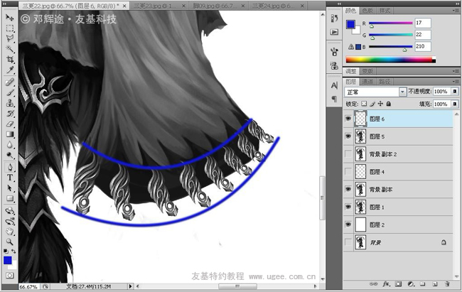 在这里大家要注意了,长袍前端剪掉后我们还需要把长袍飘动的感觉做回去。