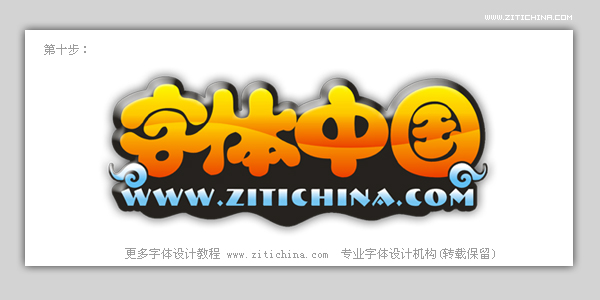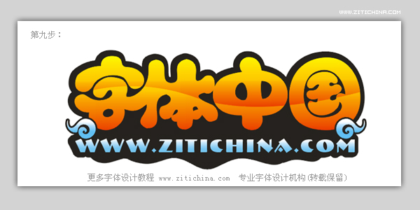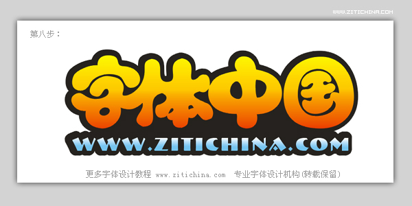 第八步:打上域名结合字体,并且给字体中国四个字上色。红色到黄色渐变。使用贝塞尔