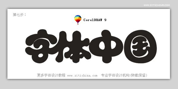 第七步:用CorelDRAW 9 这个软件的贝塞尔工具勾出字体中国四个字,让这四个字变成矢量文件,方便上色处