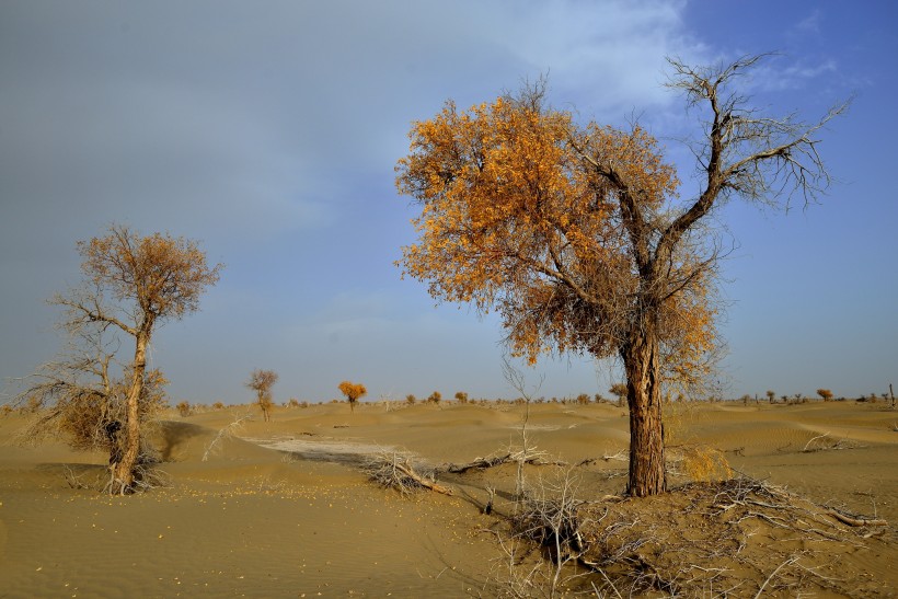 新疆塔里木沙漠公路旁的胡杨树图片(8张)