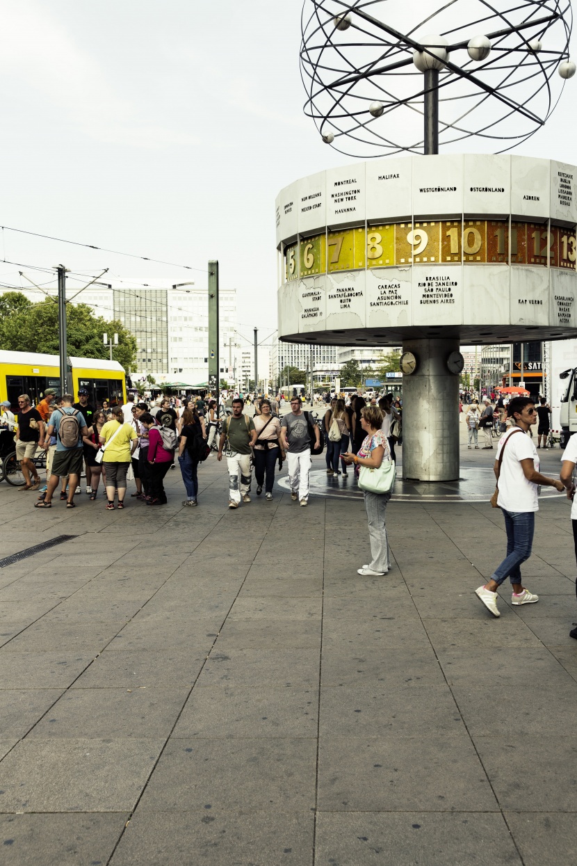 德国柏林世界时钟1969年由当时东德政府建成的世界钟,在当时东柏林的市中心——亚历山大广场上,用于展示世界各地的时间。从70年代起便是游客和当地人喜爱的见面约会地点