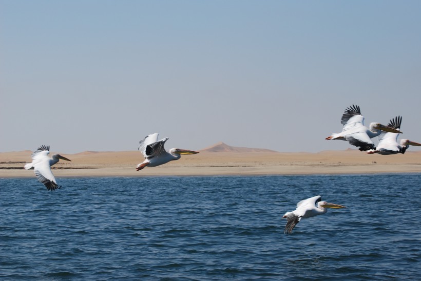 鹈鹕(学名:Pelecanus)鹈鹕属8种水禽的统称。身长约150厘米,全身长有密而短的羽毛,羽毛为白色、桃红色或浅灰褐色。有些种类的鹈鹕体形较大,其翼展宽3米,能以超过每小时40千米的速度长距离飞行。嘴长30多厘米,具有下嘴壳与皮肤相连接形成的大皮囊;皮囊可以自由伸缩。尾羽根部有个黄色的油脂腺,能够分泌大量的油脂,油脂被用来涂抹羽毛,保持羽毛光滑柔软,便于避水。分布于全世界的温暖水域。大型游禽。喙长,喉囊发达,适于捕鱼,但不贮存。主要栖息于湖泊、江河、沿海和沼泽地带。常成群生活,善于飞行,善于游泳,在地