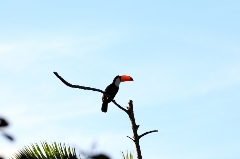 鵎鵼(学名:Ramphastos toco):又名巨嘴鸟。体长约67厘米,嘴巨大,长17~24厘米,宽5~9厘米,形似嘴刀。嘴非常漂亮,上半部黄色,略呈淡绿色,下半部呈蔚蓝色,喙尖点缀着一点殷红。眼睛四周镶嵌着天蓝色羽毛眼圈,胸脯橙黄色,脊部为漆黑色。色彩艳丽和惊人的大喙使其观赏价值极高。主要以果实、种子、昆虫、鸟卵和雏鸡等为食。以树洞营巢。主要分布在南美洲热带森林中,尤以亚马逊河口一带为多。