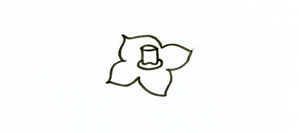 步骤一:先画上一个花朵形状的四边形,上面有四个尖尖的角,上面还有一小节树枝。