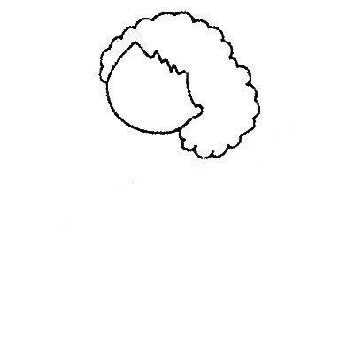 1.画出大妈胖乎乎圆滚滚的脸和烫过的头发