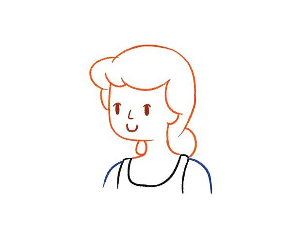 1.画出脸庞轮廓2. 画出脖子3.画出头发形状4.画出五官5.画出整体头发6. 画出身体7.涂上头发8. 涂上衣服和脸庞9. 灰姑娘没有遇到王子之前她很辛苦,我们画上她在劳动的场