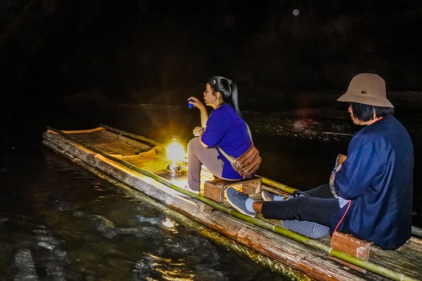撑着竹筏在地下溶洞探险的人物图片(17张)