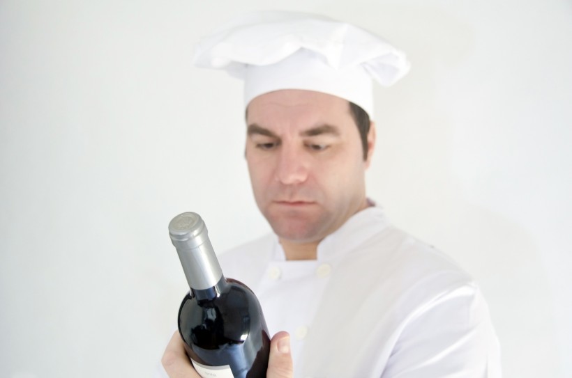 手里拿着一瓶红酒的厨师图片(8张)