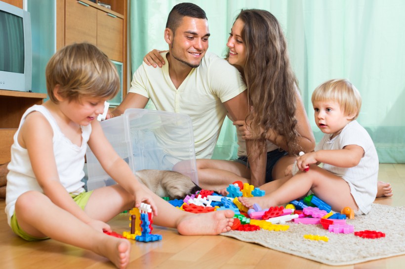 父母居家陪孩子玩耍图片