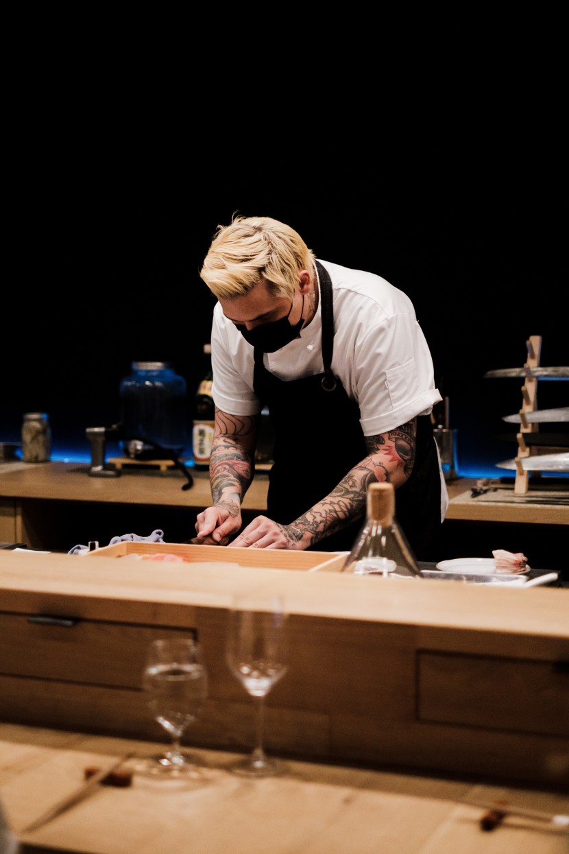 双臂有纹身的准备做西餐的厨师图片(9张)