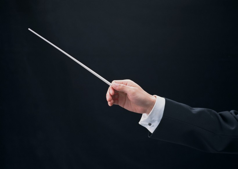 指各类管弦乐队、合唱队等集体性的音乐表演时,站在乐队或合唱队前面手拿指挥棒、并结合肢体语言指示如何演奏或演唱的人。指挥者右手持指挥棒(合唱指挥一般不用指挥棒)掌握和速节拍度;左手主要表示强弱等乐曲表情。脸部表情、头部以及身体的动作,也是指挥的一个方面。