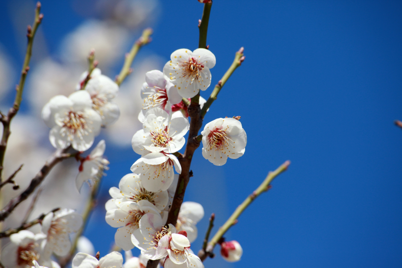 梅(学名:Armeniaca mume Sieb.):小乔木,稀灌木,高4-10米;树皮浅灰色或带绿色,平滑;小枝绿色,光滑无毛。叶片卵形或椭圆形,叶边常具小锐锯齿,灰绿色。花单生或有时2朵同生于1芽内,直径2-2.5厘米,香味浓,先于叶开放;花萼通常红褐色,但有些品种的花萼为绿色或绿紫色;花瓣倒卵形,白色至粉红色。