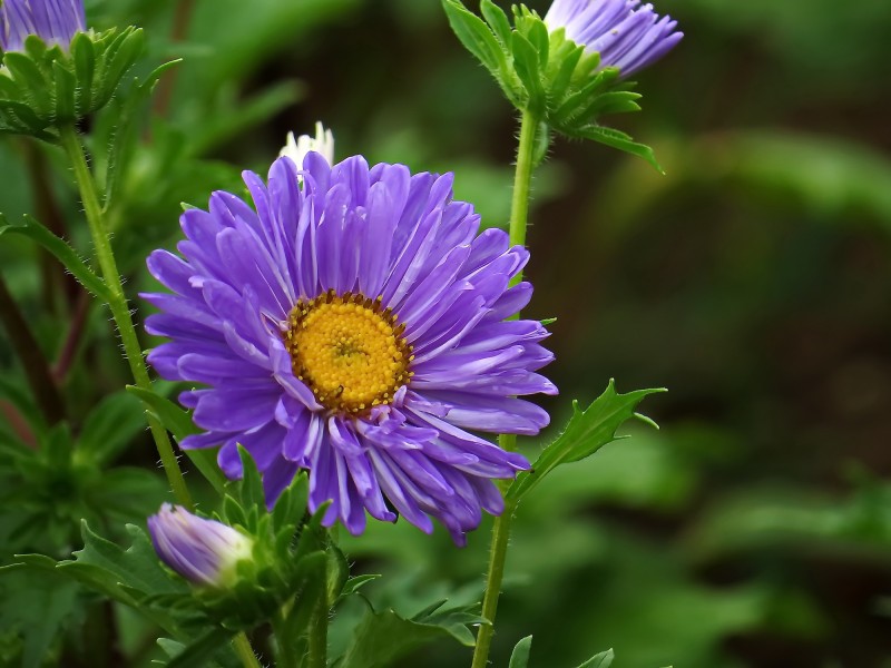 翠菊为菊科、翠菊属植物。亦称一年生紫菀(annual aster)。 菊科(Asteraceae)草本植物,学名为Callistephus chinensis。许多栽培品种久已为庭园观赏花卉。中国的乡土种高75公分(2.5呎),花白色至紫堇色,中心部分的盘花黄色。栽培品种高20公分∼1公尺(8吋∼3呎),头状花序宽达12公分(约5吋),通常完全由花瓣状的舌状花所组成,白、淡黄、粉红、淡红、淡蓝、紫或紫堇色。翠菊花色鲜艳,花型多样,开花丰盛,花期颇长,是国内外园艺界非常重视的观赏植物。夏季至
