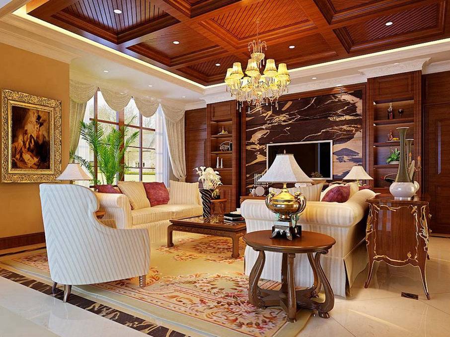 古典客厅别墅吊顶电视背景墙装修图