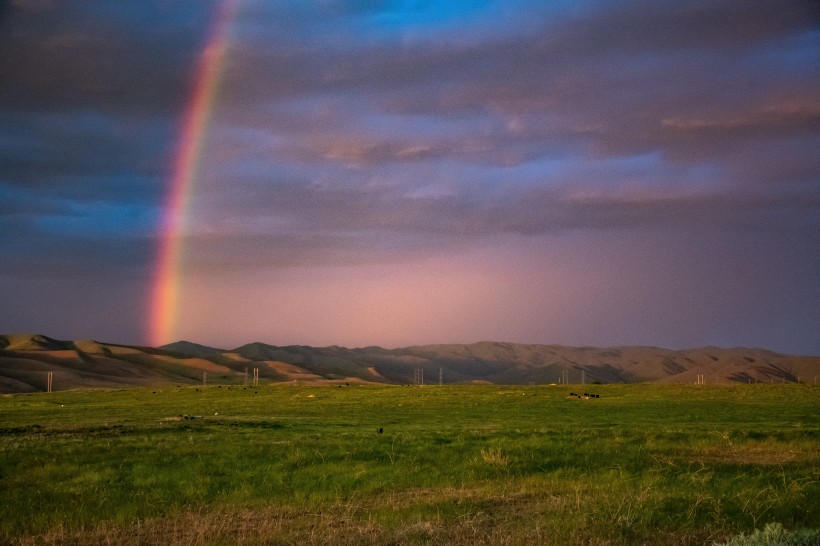 彩虹,又称天虹,简称为"虹",是气象中的一种光学现象。当太阳光照射到空气中的水滴时,光线被折射及反射,在天空上形成拱形的七彩光谱,雨后常见。形状弯曲,通常为半圆状。色彩艳丽。东亚、中国对于七色光的最普遍说法(按波长从大至小排序):红、橙、黄、绿、蓝、靛、紫。