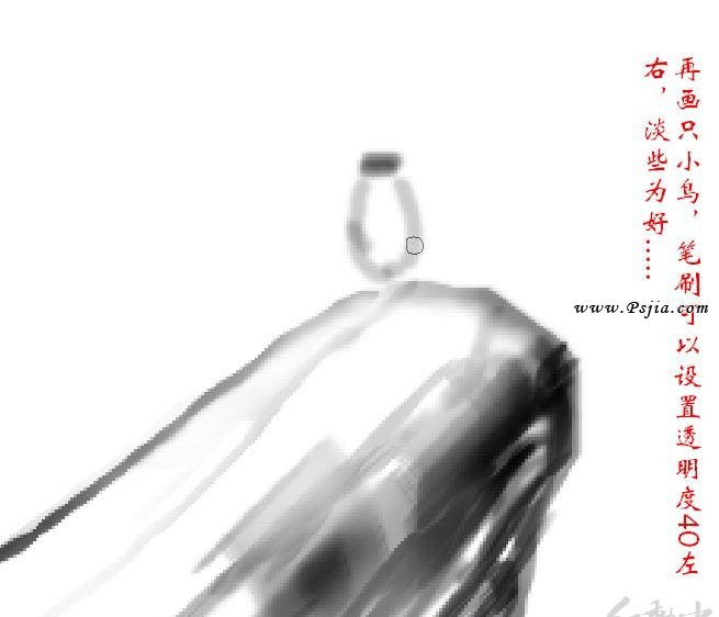 6、再画只小鸟,笔刷可以设置透明度为:40%左右,淡些为好。