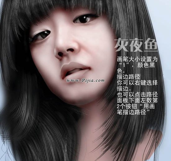 Photoshop绘制优雅的长发美女