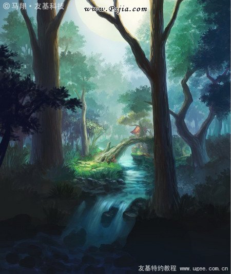 每人心中都有一处幽境,本周的教程,我们引领你进入一片静谧森林,皎洁圆月,苍翠树丛,清澈小溪,当你最终到达林中深处,叩响红房子的门扉,你期望着谁的等待? 1.这次的教