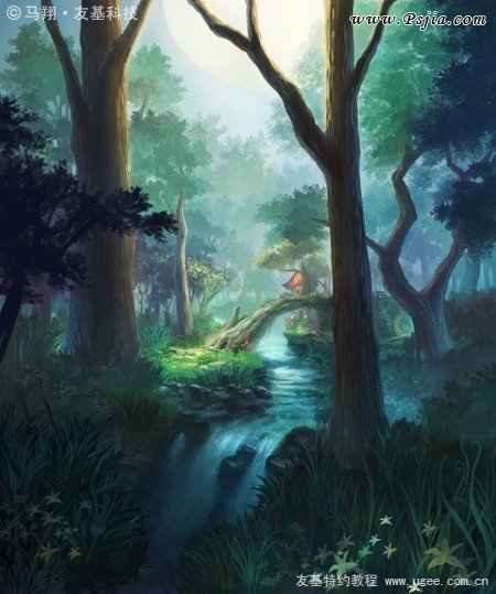 每人心中都有一处幽境,本周的教程,我们引领你进入一片静谧森林,皎洁圆月,苍翠树丛,清澈小溪,当你最终到达林中深处,叩响红房子的门扉,你期望着谁的等待? 1.这次的教