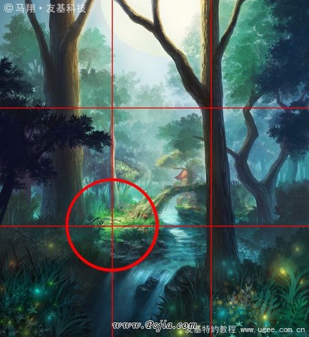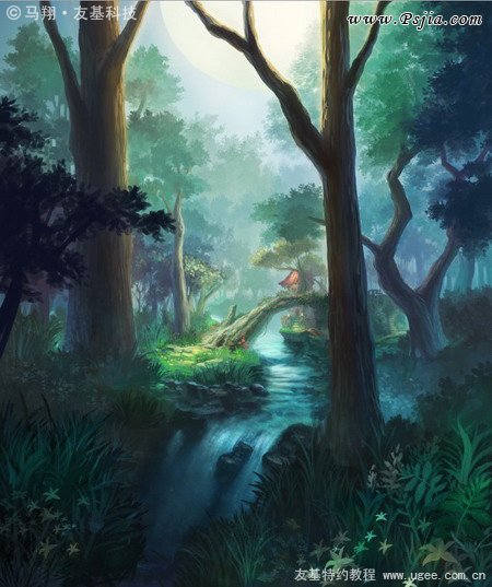 27.最后画上一些萤火虫之类的小亮点丰富画面,整幅画就算完成了。