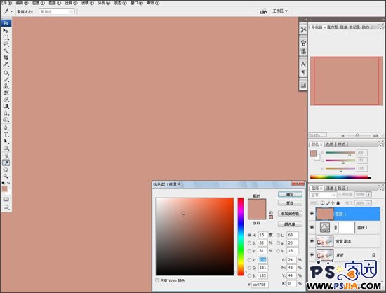 创建空白图层并填充所想要的色彩。这个颜色的选取是依照要模拟的样片颜色而定的。色值的选取见下图。