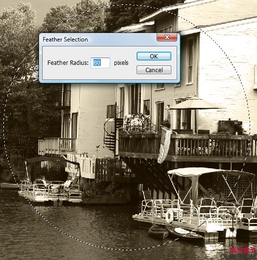 找到图像的中心,使用矩形选框工具创建一个圆形选区