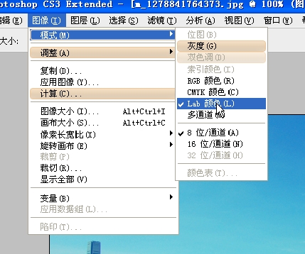 所以首先在PS里打开这张照片,如图所示,转换的LAB模式(个人觉得调整偏色最佳的模式)