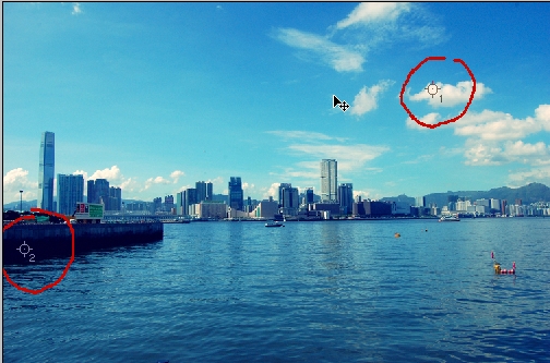 所以我选择了如图这两个点,白云上的,和岸边的倒影上的,我会觉得云上的点应该是白色的