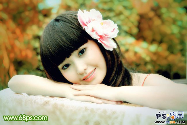 本教程介绍一组较为柔和的冷暖对比色--橙绿色调色方法。橙绿色让人感觉有种盛夏的味道,橙色代表阳光,绿色代表生命。调色的时候需要把背景部分的绿色分为层次,亮一点的绿色调成橙色,暗绿色只需要稍微调亮一点,后期再对人物进行简单的美化处理即可。