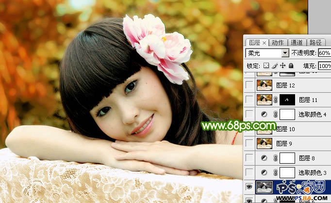 9、新建一个图层,盖印图层。按Ctrl + Shift + U 去色。执行:滤镜 模糊 高斯模糊,数值为5,确定后把图层混合模式改为柔光,不透明度改为:60%,效果如下