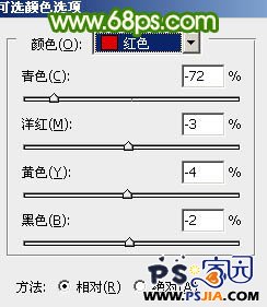 | 11、创建可选颜色调整图层,对红色进行调整,加强全图的红色,参数设置如图23,效果如图24。 |