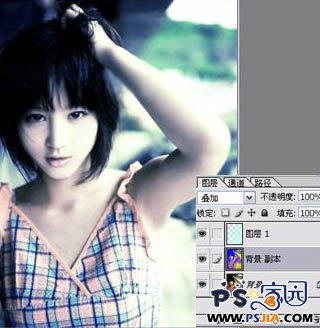 | 4、回到图层面板后吧背景副本图层混合模式改为“叠加”,效果如下图。 |