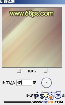 | 8、新建一个图层,盖印图层。执行:滤镜 > 模糊 > 动感模糊,参数设置如图13,确定后把图层混合模式改为“柔光”,不透明度改为:60%,效果如图14。 |