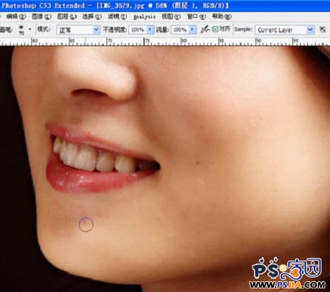 2、对磨皮后皮肤还存在的一些瑕疵进行单独修饰,可用仿制图章,如下图: |