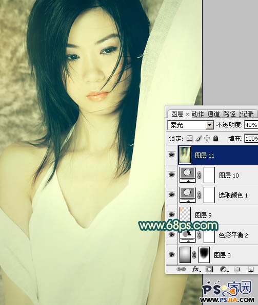 11、按Ctrl + J 把当前可选颜色调整图层复制一层,图层不透明度改为:50%,效果如下图。 图20 12、新建一个图层,盖印图层。执行:滤镜 模糊 动感模糊,