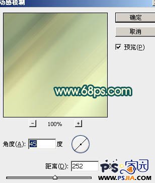 12、新建一个图层,盖印图层。执行:滤镜 > 模糊 > 动感模糊,参数设置如图21,确定后把图层混合模式改为“柔光”,不透明度改为:40%,效果如图22。