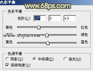 1、打开原图素材,创建色彩平衡调整图层,对阴影,中间调,高光进行调整,参数设置如图1 - 3,效果如图4。