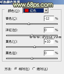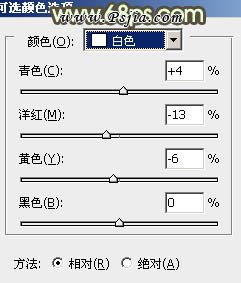 10、创建可选颜色调整图层,对红,黄,白进行调整,参数设置如图19 - 21,效果如图22。
