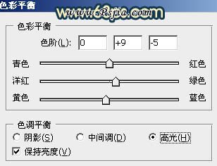 6、创建色彩平衡调整图层,对中间调及高光进行调整,参数设置如图11,12,确定后把图层不透明度改为:80%,效果如图13。 图11 图12 图13 7、创建可选颜色