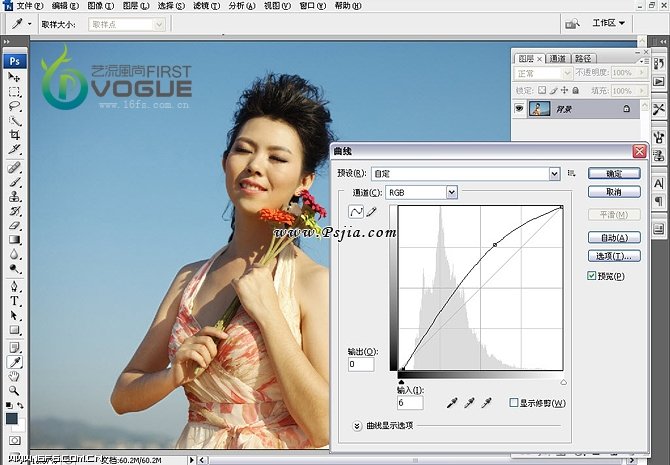 02:执行曲线命令,曲线调整如图所示.调整后将选区取消.