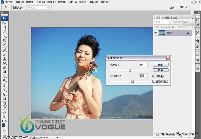 08:亮度+9 对比度+19,(注:这一步的的操作主要来增强整个图像的对比度,让照片呈现一种更清晰更通透的效果)