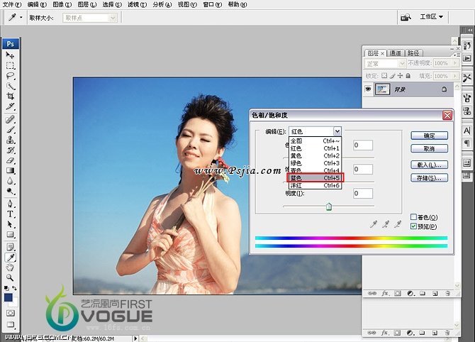 11:执行图像调整/色相饱和度:编辑-蓝色,如图所示