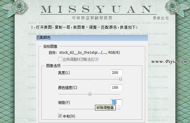 1、打开原图,把背景图层复制一层,执行:图像 > 调整 > 匹配颜色,参数设置如下图。