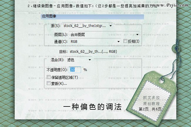 2、继续执行:图像 > 应用图像,参数设置如下图。这两步都是一些提亮加减黄的方法。